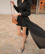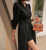 輕鬆駕馭都市風格!這款連身短褲採用挺身西裝布料打造上身,展現俐落剪裁與專業氣質。下擺巧妙融合飄逸雪紡料,為整體造型增添優雅動感。無論是辦公室穿搭或週末出遊,都能輕鬆轉換風格,展現自信魅力。
